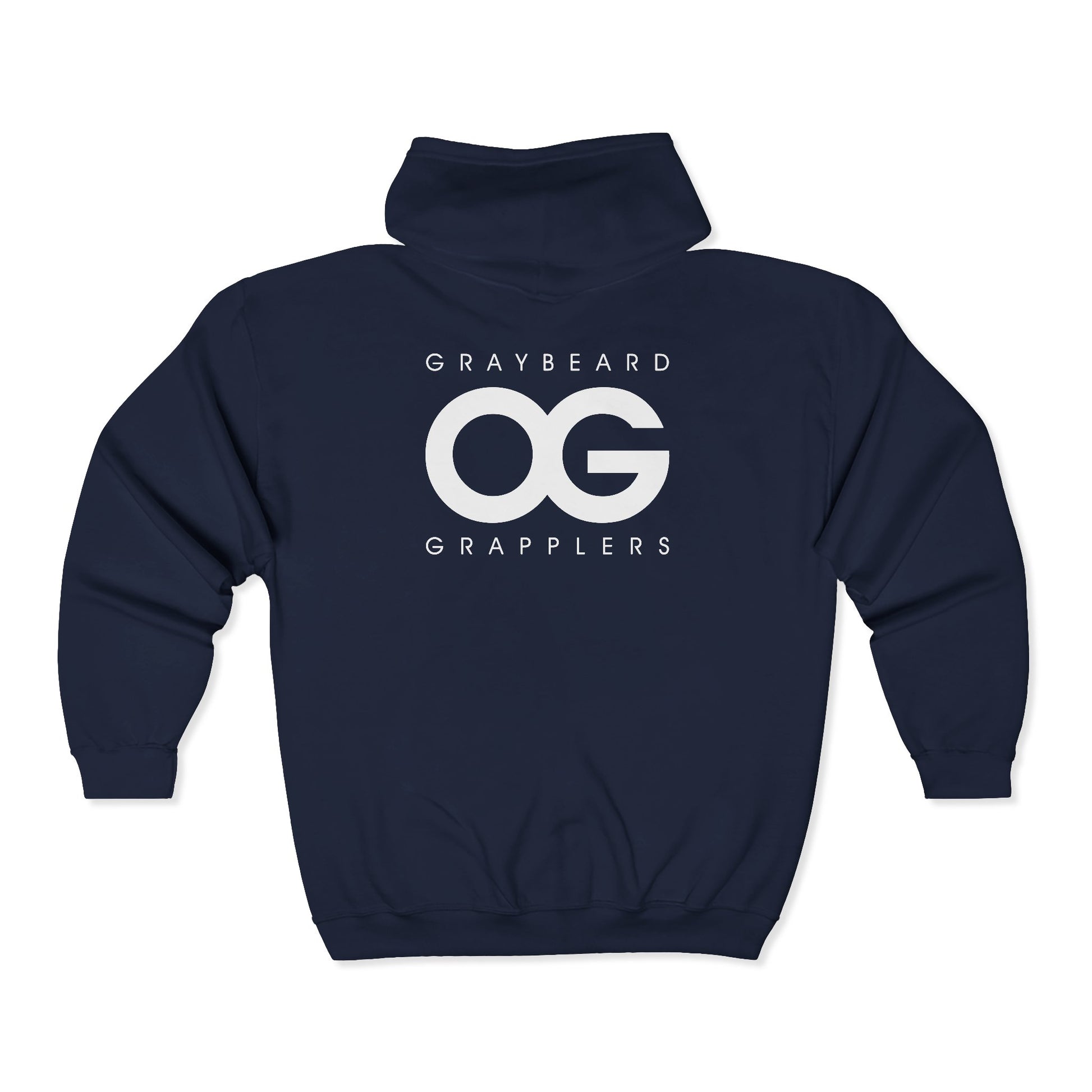 Pull the hood up, tighten the drawstring, and feel the familiar calm before the roll. This full-zip hoodie wears the Graybeard Grapplers OG emblem like a badge of late-night mats, sticky sweat, and quiet craft. The midweight fabric holds you close—warm but breathable—so it moves with you from the car to the gym to the chill of post-training coffee. Zippered front and roomy pockets keep your tape, mouthguard, and phone within reach. Subtle embroidered chest detail and DTF/DTG prints on the sleeves give it an authentic, lived-in look that reads veteran, not flashy. For adult grapplers who measure success in hours on the mat, this hoodie settles around your shoulders like the end of a hard round: steady, familiar, and earned.